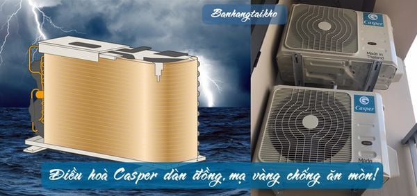 Điều hoà Casper SC-18FS36 được trang bị dàn đồng nguyên chất, cánh tản nhiệt đồng mạ vàng giúp tăng hiệu suất làm lạnh, ngăn ngừa sự ăn mòn của nước mưa, muối biển và các tác nhân ăn mòn khác, từ đó tăng độ bền của máy.