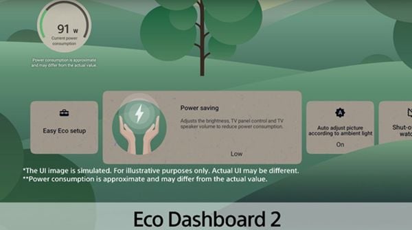 – Điều chỉnh mức tiêu thụ điện năng của tivi để tiết kiệm hiệu quả với bảng điều khiển Eco Dashboard.
