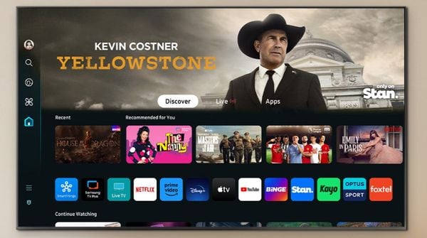 Tivi Samsung chạy trên hệ điều hành Tizen™, mang đến cho người dùng giao diện trực quan và dễ dàng sử dụng. Ngoài ra, tivi còn có một kho ứng dụng phong phú, giúp đáp ứng nhu cầu giải trí đa dạng của người dùng. Có nhiều ứng dụng phổ biến có sẵn như YouTube, Netflix, Clip TV, FPT Play, MyTV, Spotify, VietON và trình duyệt web…