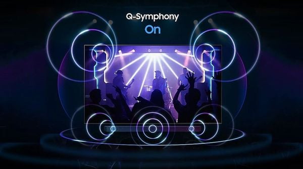 – Q-Symphony kết hợp loa tivi với loa thanh bằng AI để tối ưu hệ thống âm thanh, tạo ra không gian giải trí tuyệt vời.