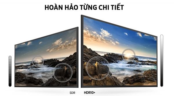 Độ tương phản tăng cường cùng dải màu sắc vượt trội từ công nghệ HDR10+ cho bạn đắm chìm vào từng phân cảnh sống động như thật. Mang đến những khung hình đen huyền sâu thẳm và trắng sáng rực rỡ với độ sắc nét đến từng chi tiết.