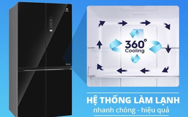 Chiếc tủ lạnh hiện đại Electrolux có ứng dụng công nghệ Cooling 360 độ đưa hơi lạnh tạo ra phân bổ đồng đều từ trước sau, hai bên và đến từng ngăn tủ, luôn luôn duy trì ổn định nhiệt độ, tránh tạo điểm nóng hoặc lạnh cục bộ, làm lạnh nhanh, đều hơn cho thực phẩm được bảo quản tươi lâu hơn. Hơn nữa, với thiết kế thông minh, hệ thống thoát khí đã đưa luồng khí lạnh lan tỏa đều, hiệu quả đến mọi ngóc ngách kể cả khi tủ đã chứa đầy thực phẩm, bảo quản thực phẩm tối ưu, giữ trọn độ tươi ngon, dưỡng chất trong từng bữa ăn, tránh hư hỏng gây lãng phí.