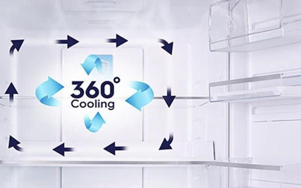 Tủ lạnh Electrolux EQE4955A-B inverter 492 lít có ứng dụng công nghệ Cooling 360 độ đưa hơi lạnh tạo ra lan tỏa đều, nhanh đến mọi ngóc ngách, vị trí trong các ngăn tủ. Nhiệt độ, độ ẩm được cân bằng liên tục, thực phẩm được làm lạnh nhanh, toàn diện, không bị héo úa, khô bề mặt hay đông đá cục bộ, giữ nguyên độ tươi ngon, trọn dưỡng chất, cho những bữa ăn bổ dưỡng, chất lượng.