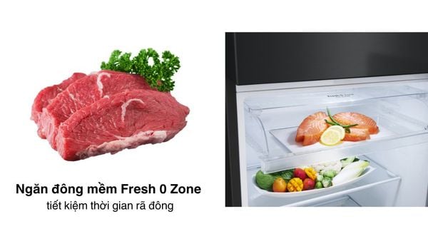 – Ngăn Fresh 0 Zone giúp các loại thực phẩm tươi sống được bảo quản ở nhiệt độ 0°C trong 24 giờ. Thiết kế hộp kín của ngăn chứa này còn giúp tránh lẫn mùi thực phẩm.