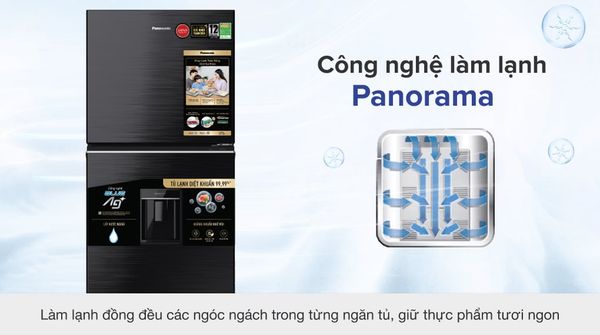 – Công nghệ làm lạnh vòng cung Panorama: tạo luồng hơi lạnh thổi nhanh chóng và đồng đều khắp ngăn chứa đảm bảo độ tươi cho thực phẩm và tiết kiệm chi phí tiền điện hằng tháng đáng kể cho gia đình.